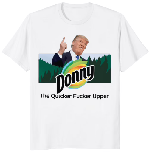 The Donny The Quicker Fucker Upper Anti Trump Shirt was born from the internet’s viral political humor — a witty expression of frustration turned into wearable art. The slogan captures the mood of the moment: bold, unfiltered, and unforgettable.