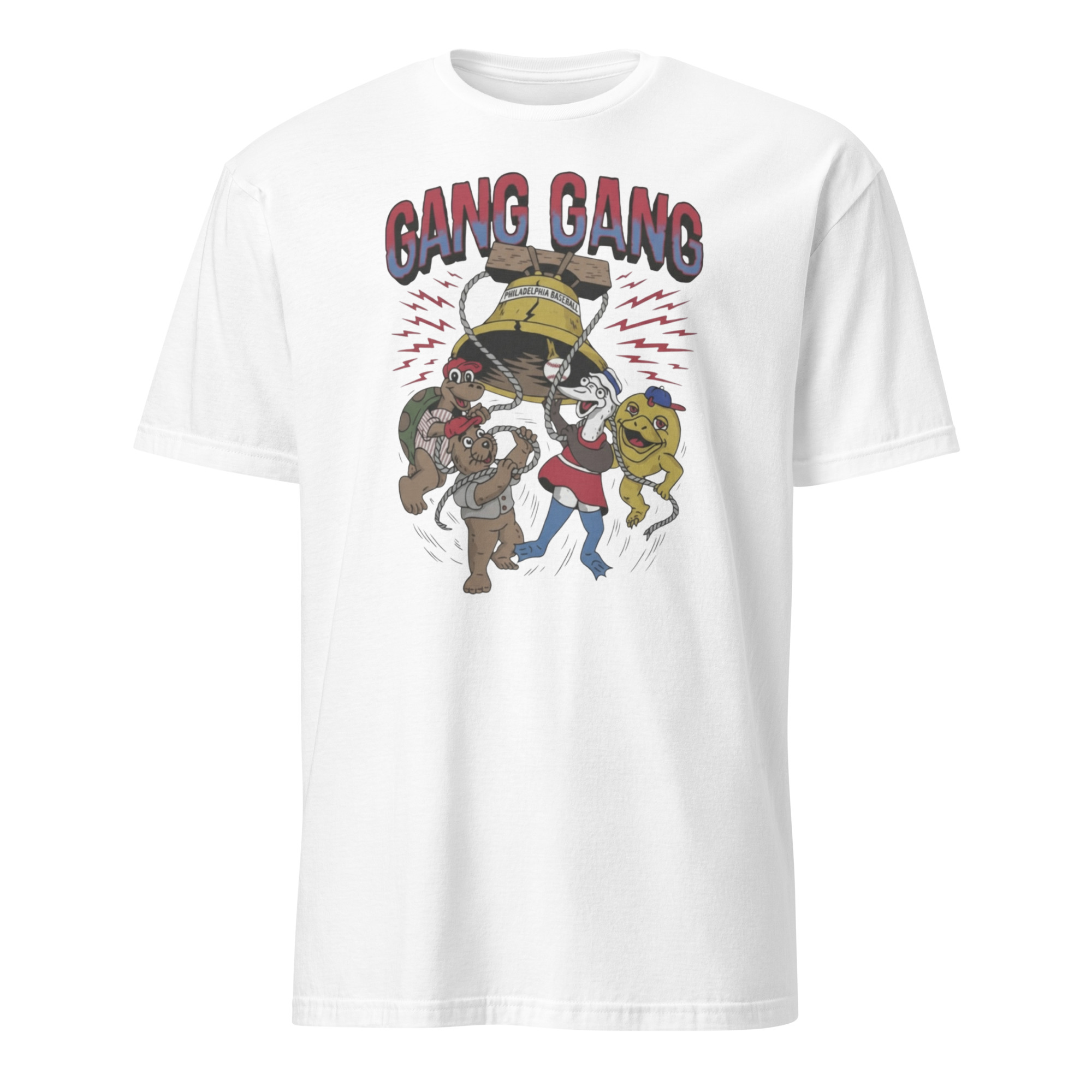 If you’re looking for a fresh, funny, and wearable piece of culture, this shirt is it. Whether you’re a Philly local, a streetwear collector, or someone who loves making a statement, the Gang Gang Cartoon Characters Cracked Bell Philly Shirt delivers.