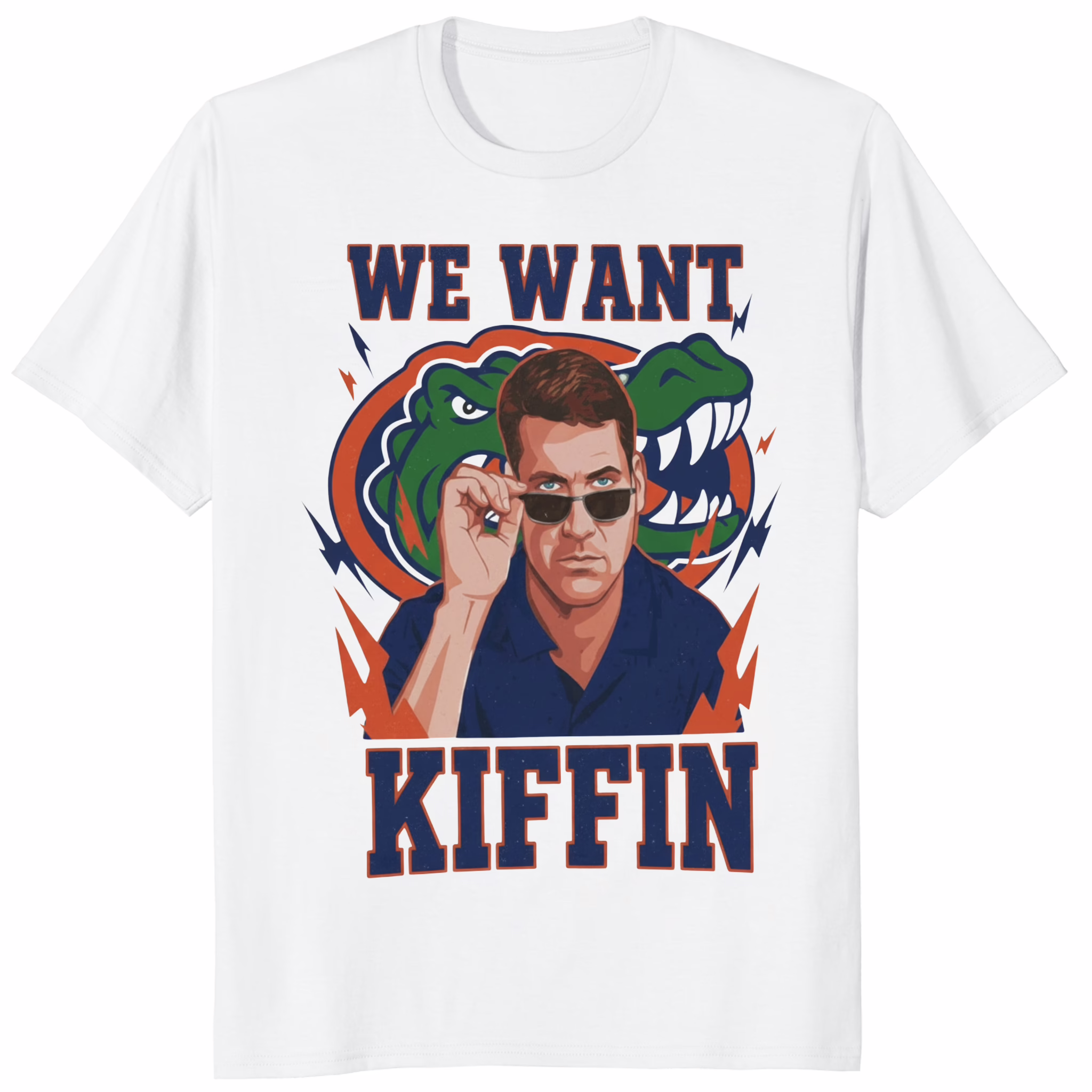 The Gators We Want Kiffin Shirt design captures the viral fan movement that spread through Gainesville — a powerful message of excitement and loyalty. The bold “WE WANT KIFFIN” print in classic orange and blue represents both tradition and transformation.
