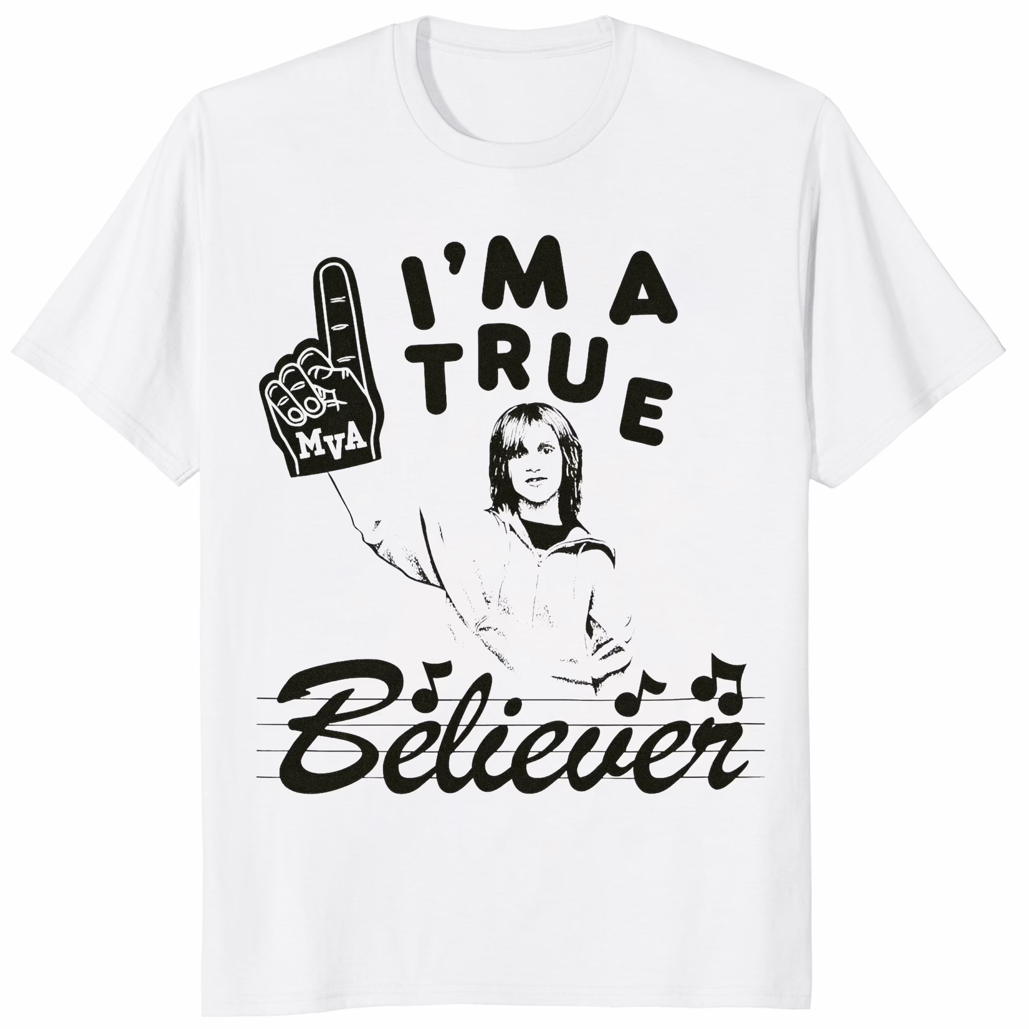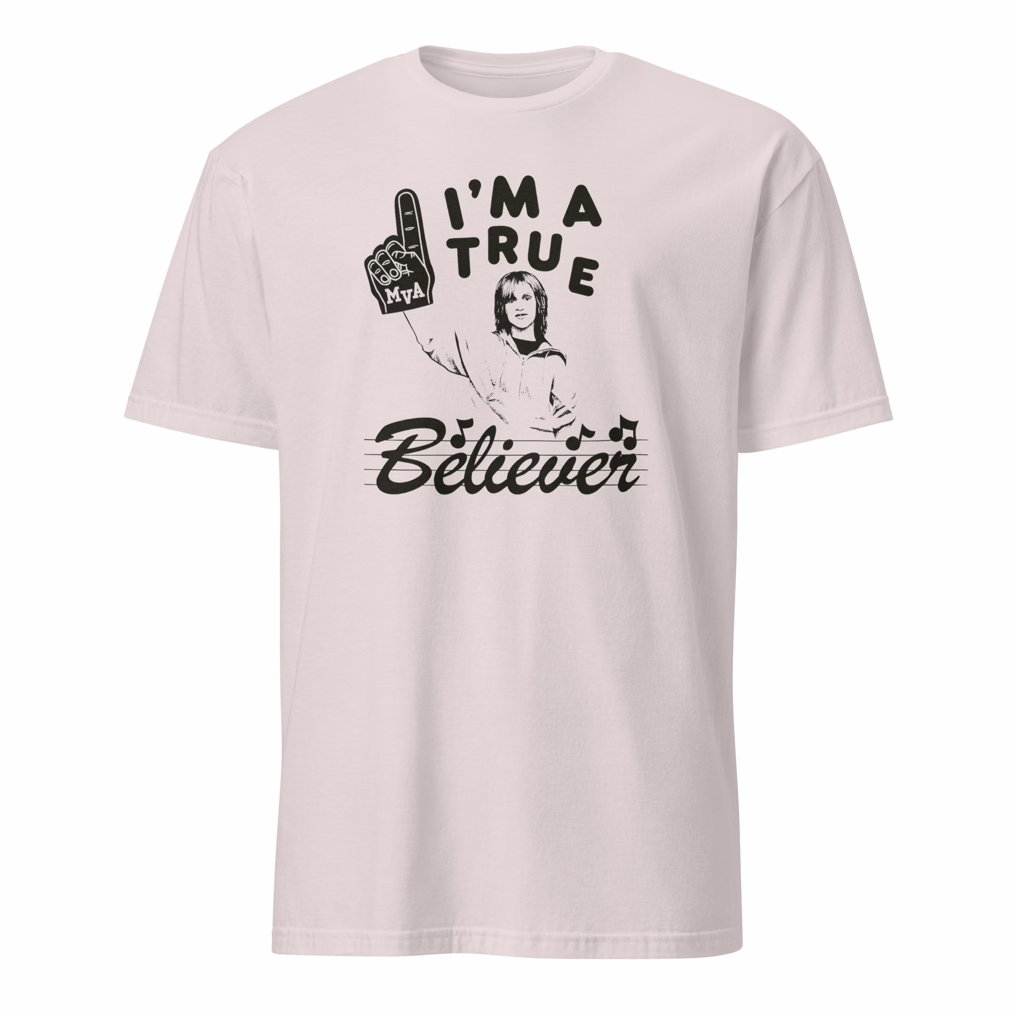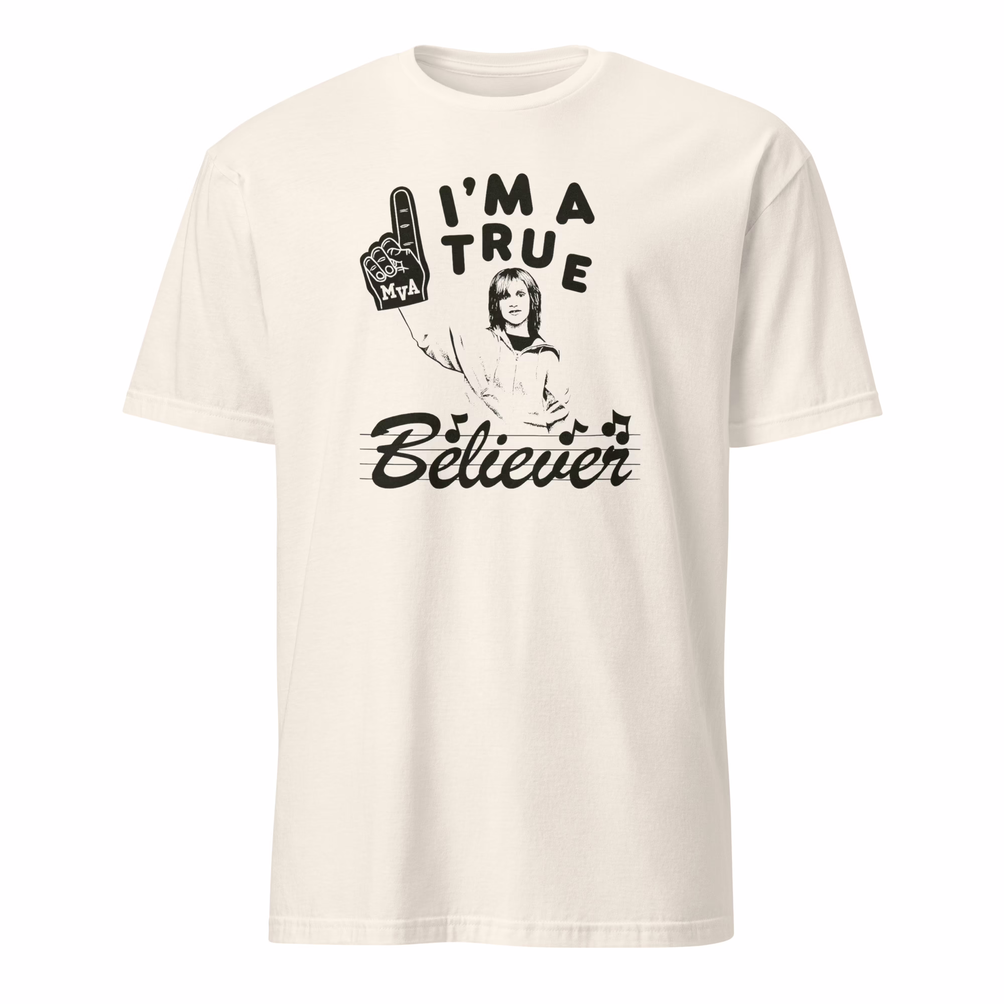 Typography-forward message: “I Am A True Believer”