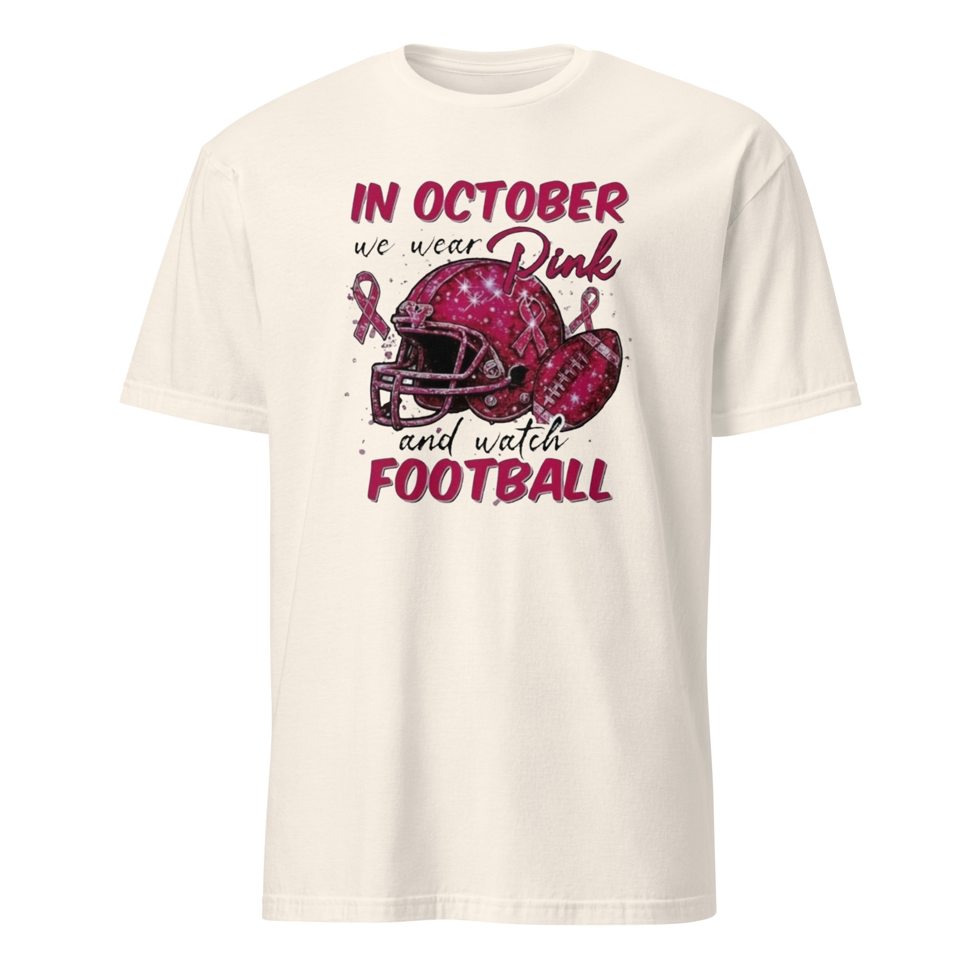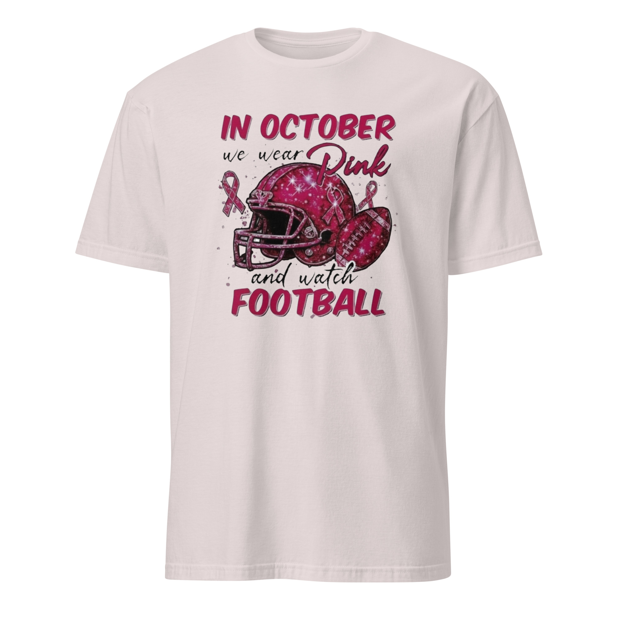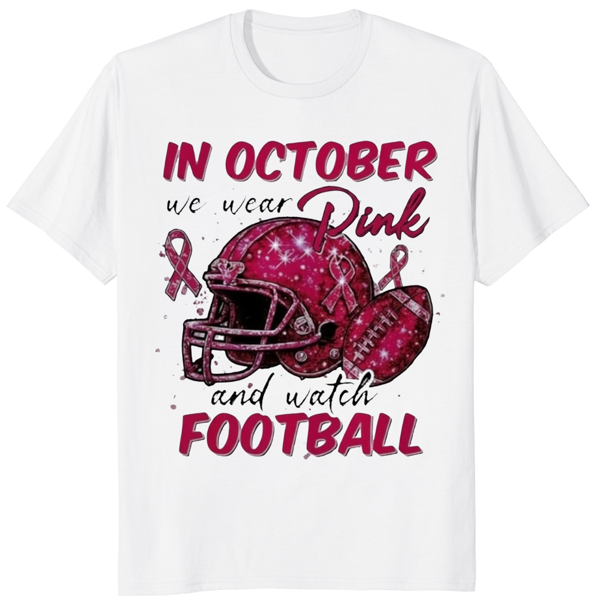 In October We Wear Pink and Watch Football Shirt white