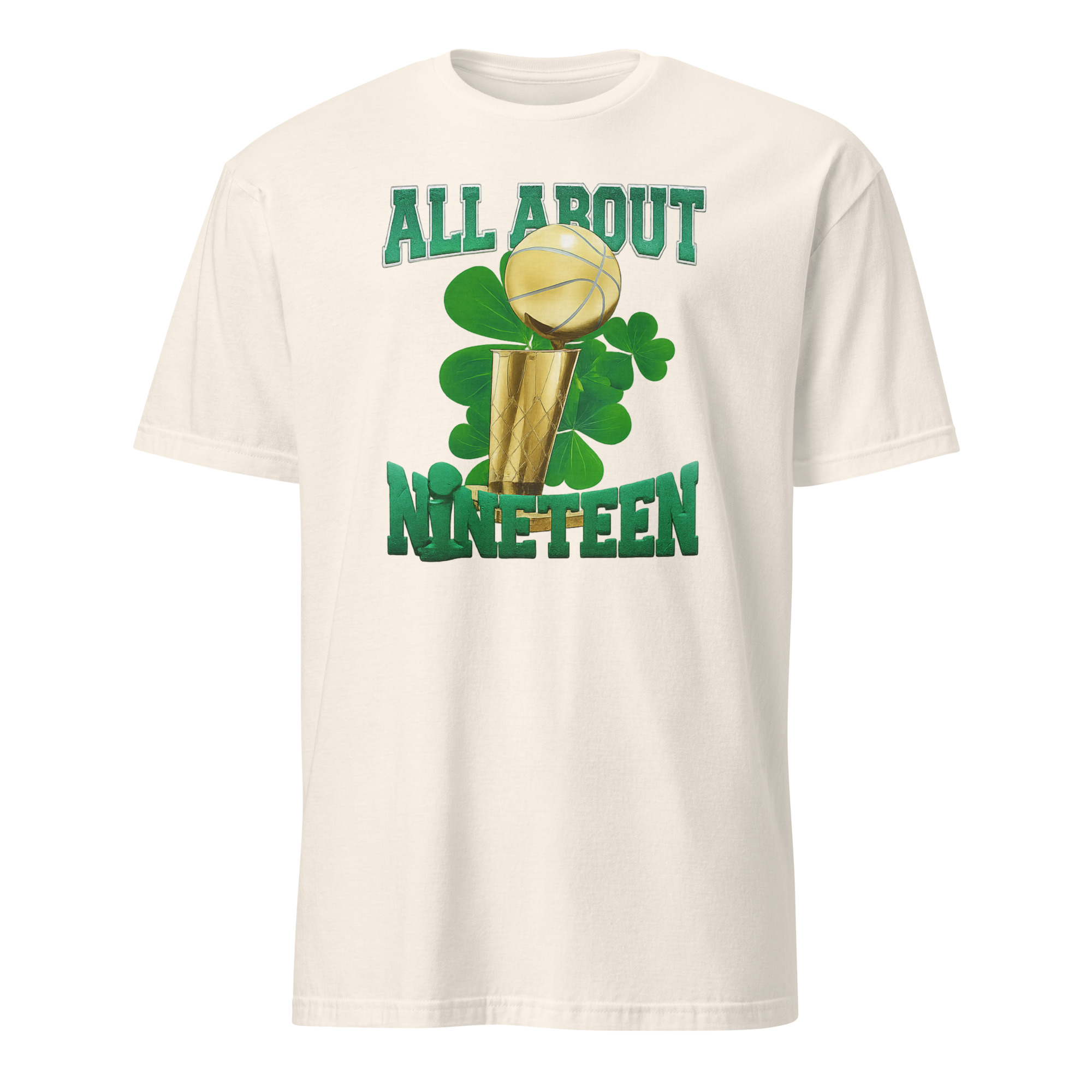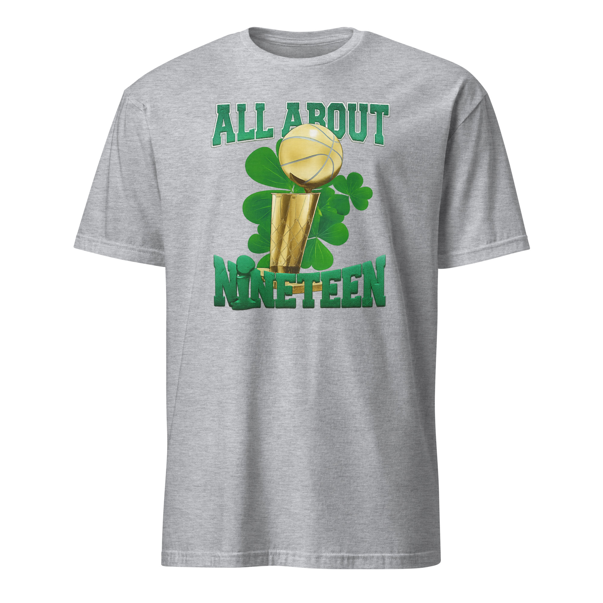 The “All About 19” shirt is directly tied to the Celtics’ historic pursuit of their 19th NBA title. The number 19 represents Boston’s climb to the top of the championship ladder, further separating them from their storied rivals.