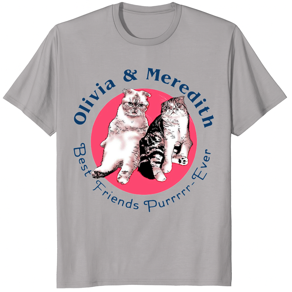 The Olivia & Meredith Best Friends Purr Ever Shirt celebrates friendship with a cute cat-inspired message and an easy everyday fit. Designed for comfort and personality, this tee is a fun way to show your bond wherever you go.