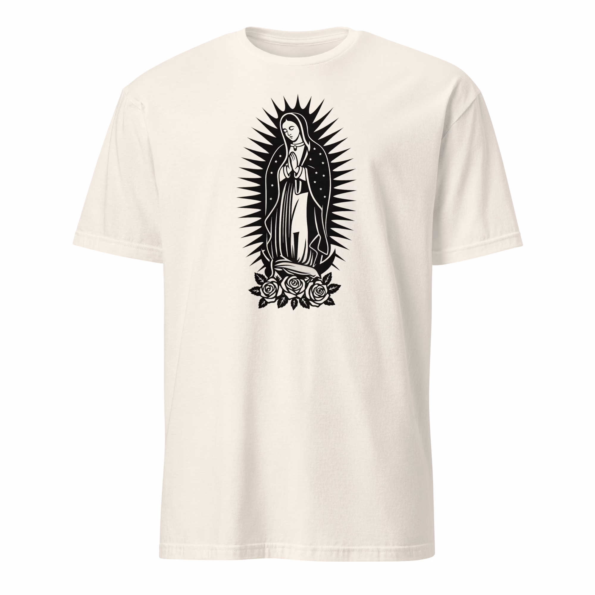 The Our Lady of Guadalupe Virgin Mary with Roses Shirt is versatile enough for countless occasions. Faithwear doesn’t have to be limited — this tee blends effortlessly with modern clothing.