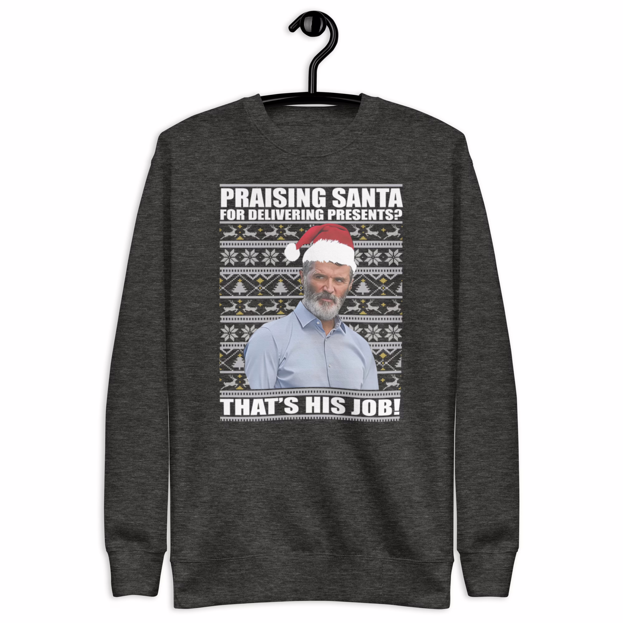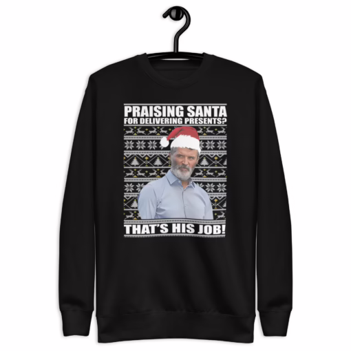 The Design & Inspiration comes directly from one of Keane’s most famous and meme-able moments as a football pundit. His refusal to offer excessive praise for players doing the bare minimum—often remarking, “That’s his job!”—has become a legendary piece of football banter. This is why the Roy Keane Christmas Sweatshirt is so popular.